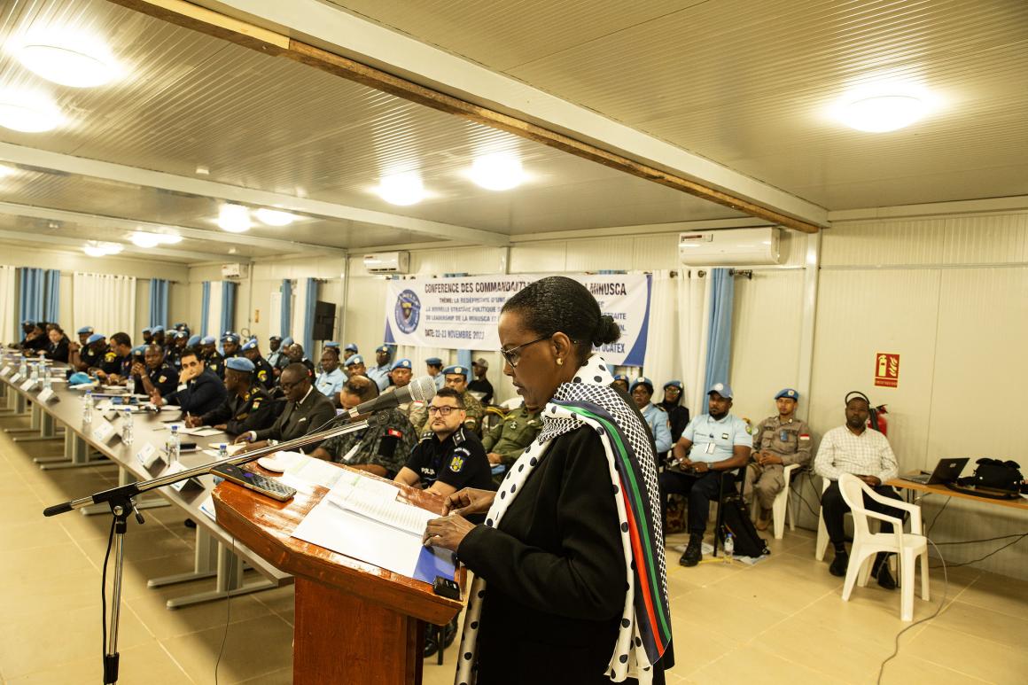 Une centaine de cadres de la Police des Nations Unies (UNPOL), ont pris part à un atelier d’échanges le 22 et 23 novembre 2023 à Bangui, pour redéfinir la stratégie de mise en œuvre de leur mandat afin de répondre aux dynamiques sécuritaires du terrain, conformément à la résolution 2709, du Conseil de Sécurité du 15 novembre 2023. Les travaux ont été lancés par la Représentante spéciale du Secrétaire général de l’ONU en République centrafricaine et Cheffe de la MINUSCA, Valentine Rugwabiza, en présence du Commandant de la Force de la MINUSCA et du Chef de la Composante Police de la Misson.