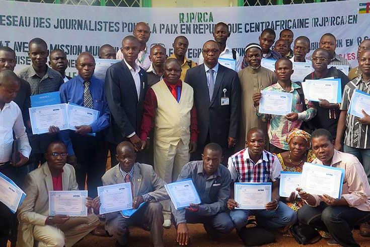 La Mission multidimensionnelle intégrée des Nations Unies pour la stabilisation de la République centrafricaine (MINUSCA) a organisé, de concert avec le Réseau des Journalistes pour la Paix en Centrafrique (RJP/RCA), une journée de réflexion au profit de journalistes des médias publics et privés centrafricains autour du thème «Promouvoir la culture de la paix à travers les medias.» Cette activité qui s’est déroulée à la Maison de la presse et des journalistes, à Bangui, a eu pour objectif d’inviter les journalistes des médias publics et privés centrafricains à promouvoir la paix durable en République centrafricaine à travers la diffusion et la publication de l’information.