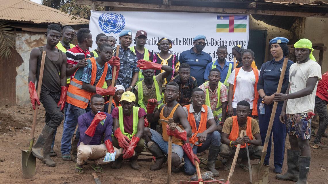 50 jeunes du quartier PK-5, dans le 3e arrondissement de Bangui, ont procédé, le 25 janvier 2023, aux travaux de curage des canalisations de la rue Boulata - Boeing, reliant le PK 5 à au quartier Boeing, situé dans Bimbo 3. Une initiative de la MINUSCA, en partenariat avec les autorités locales, et qui se déroule sur 5 jours. Elle s’inscrit dans le cadre des efforts de consolidation de la paix et vient répondre également au problème d’inondations dans cette localité de Bangui.