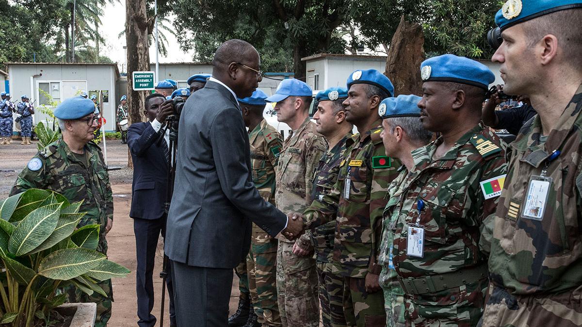 Plus tôt dans la matinée, le Représentant spécial du Secrétaire général des Nation Unies en Centrafrique a passé en revue le Bataillon d’honneur de la MINUSCA, au quartier général de la Mission.