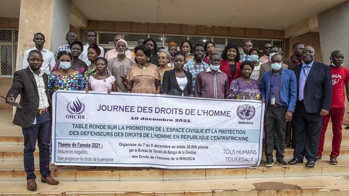 A l’occasion du 73e anniversaire de la déclaration universelle des droits de l’homme, 50 acteurs des droits de l’homme ont participé, le 07 décembre 2021 à Bangui, à une table ronde sur le thème « La promotion de l’espace civique et la protection des défenseurs des droits de l’homme en Centrafrique ». Organisée par le bureau de terrain des droits de l’homme de la MINUSCA à Bangui, en prélude à la Journée internationale des droits de l’homme commémorée le 10 décembre de chaque année, cette initiative s'inscrit dans le cadre de la série d’activités mises en œuvre par la division des droits de l’homme de la Mission dans les préfectures de la République centrafricaine sur le thème : « Réduire les inégalités, faire progresser les droits de la personne ».