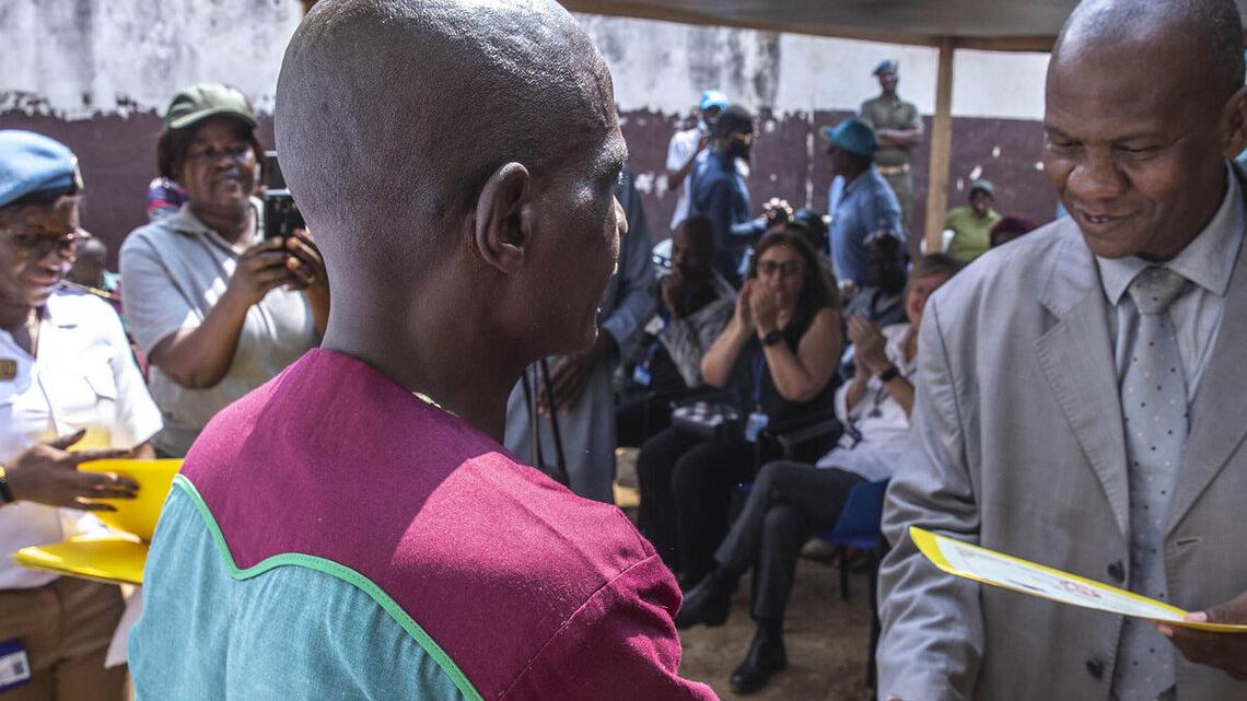 10 détenus en cours d’exécution de leurs peines et un personnel pénitentiaire de la Maison d’arrêt centrale de Ngaragba ont reçu des certificats de fin de formation le 5 janvier 2024 à Bangui, après six mois d’apprentissage en couture. Une initiative des autorités et de la MINUSCA pour promouvoir la réinsertion sociale des détenus en vue de lutter contre la récidive. La remise s’est déroulée en présence des responsables de la Maison d’arrêt centrale et ceux de la MINUSCA, représentés par l’Unité des Affaires pénitentiaires.