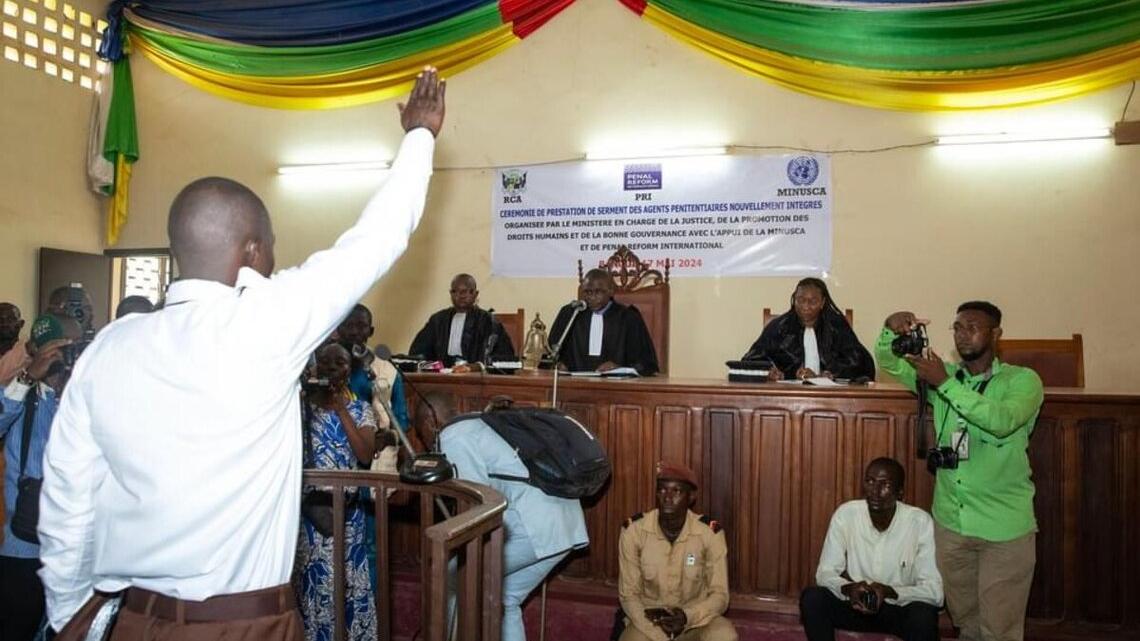 Intégrés dans l’administration centrafricaine en février 2024, 295 agents pénitentiaires ont prêté serment le 17 mai 2024 au Tribunal de grande instance de Bangui. La cérémonie s’est déroulée en présence du ministre d’État chargé de la justice, de responsables de la MINUSCA et de représentants de l’ONG « Penal Reform International ». Un nouveau pas dans la réforme du système pénitentiaire en République centrafricaine.