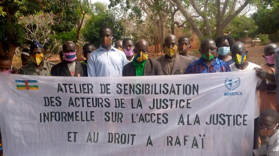 Dans le cadre des actions en faveur de la justice nationale et internationale, de la lutte contre l’impunité et de l’état de droit, la section des affaires judiciaire et pénitentiaire de la MINUSCA et la juridiction de Bangassou, appuyé par la Division de la communication stratégique et de l’information publique, ont organisé deux jours d’atelier de sensibilisation au profit des acteurs de la justice informelle de la commune de Rafai, située dans la préfecture du Mbomou, le 17 mars 2022.