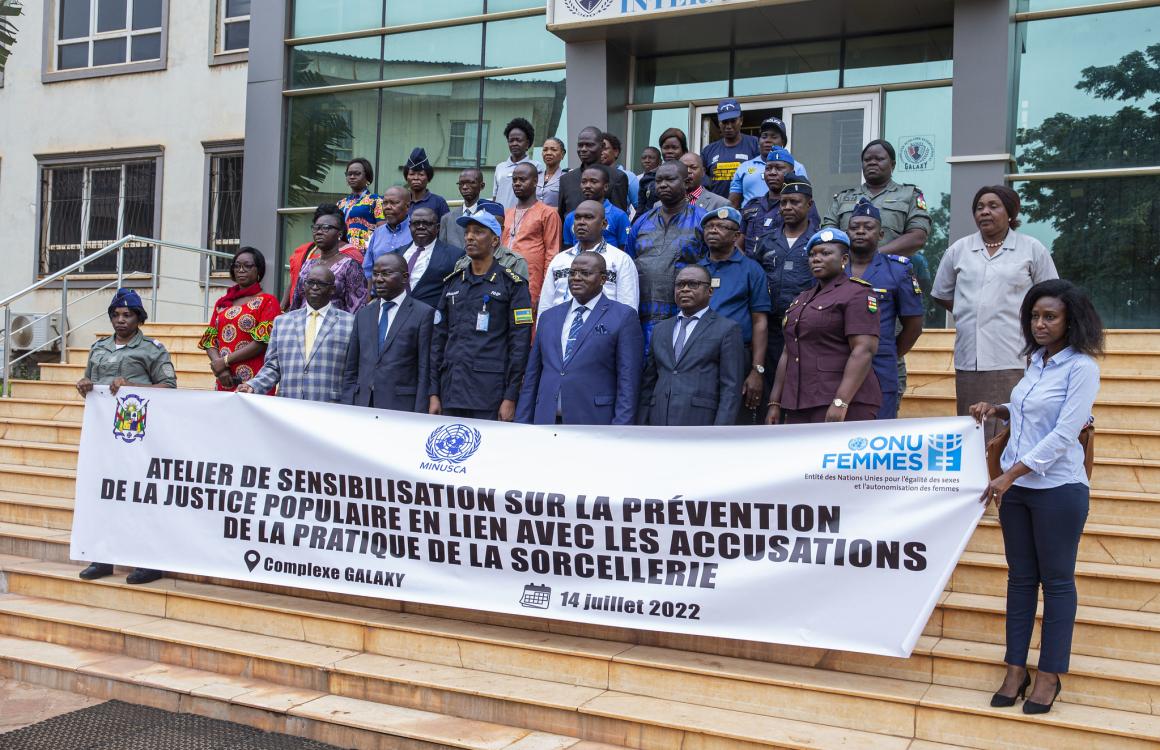 C’est dans cette optique que le ministère de la justice, de la promotion des droits de l’homme et de la bonne gouvernance et ONU FEMME ont organisé, le 14 juillet 2022, en collaboration avec la Police de la MINUSCA, un atelier de sensibilisation sur la protection de femmes et d’enfants, contre les violences basées sur les accusations de pratique de sorcellerie, à l’intention des acteurs de la justice centrafricaine.