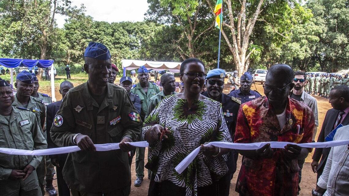 Dans ses mots de circonstances, Valentine Rugwabiza, cheffe de la MINUSCA a réitéré l’engagement de la Mission de soutenir le gouvernement centrafricain dans le processus de la restauration de l’autorité de l’Etat. " Ce projet est le résultat de la volonté politique ferme du gouvernement de restaurer l'autorité de l'état et la détermination de la MINUSCA à s'investir avec constance et résolution dans le soutien au déploiement des Forces de sécurité intérieure et à la préservation de l'intégrité territoriale ", a-t-elle déclaré.