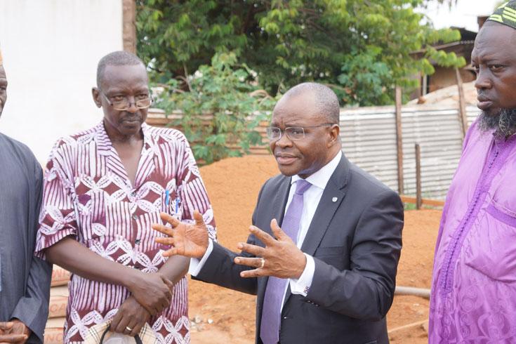 M. Agbenonci a été accueilli sur le chantier de la Mosquée par le Secrétaire général du Comité de Gestion, Issa Nimaga, ainsi que par le Président du Comité de Reconstruction, Cheikh Goumbala.