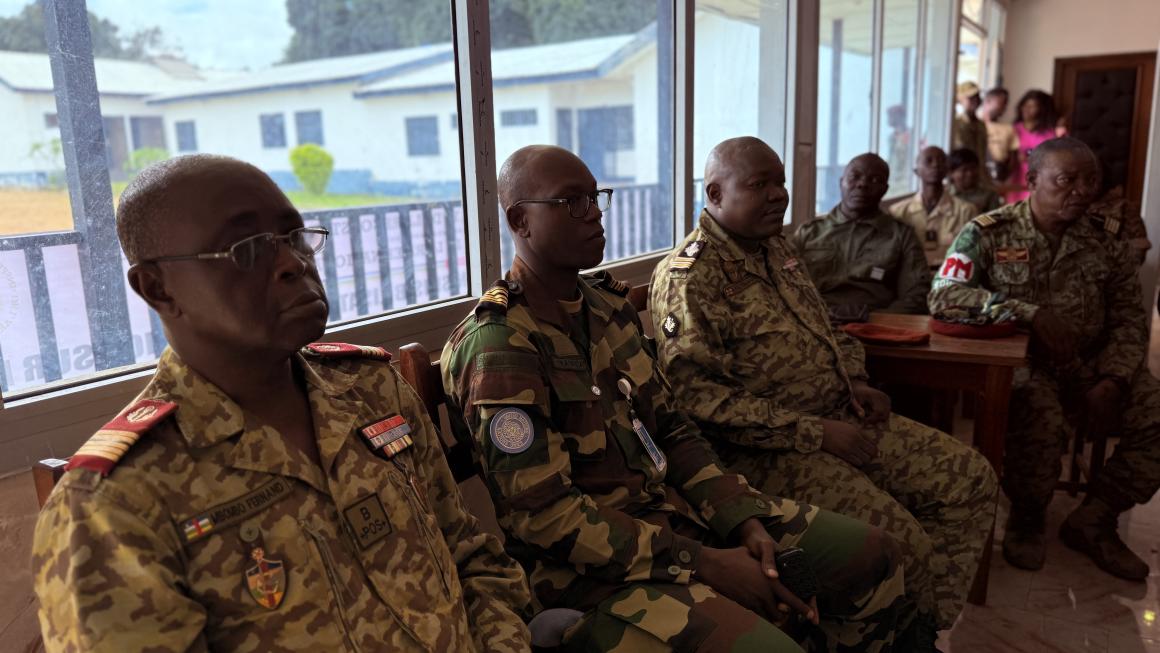 Dans le cadre de la réforme du secteur de la sécurité en République centrafricaine, la MINUSCA appuie l’organisation d’un atelier de vulgarisation du texte de l’Inspection générale de l’armée nationale (IGAN), accompagné d’une sensibilisation et d’une simulation pour mieux comprendre les procédures réglementaires d’exécution des sanctions au sein de l’armée. Présidée par le Gouverneur de la région de l’Équateur, Honoré Kinda, cette activité se déroule du 24 au 29 septembre 2025. Elle vise à renforcer les capacités des militaires de la région et à améliorer l’efficacité de l’armée nationale en matière de gouvernance et de respect de la réglementation.
