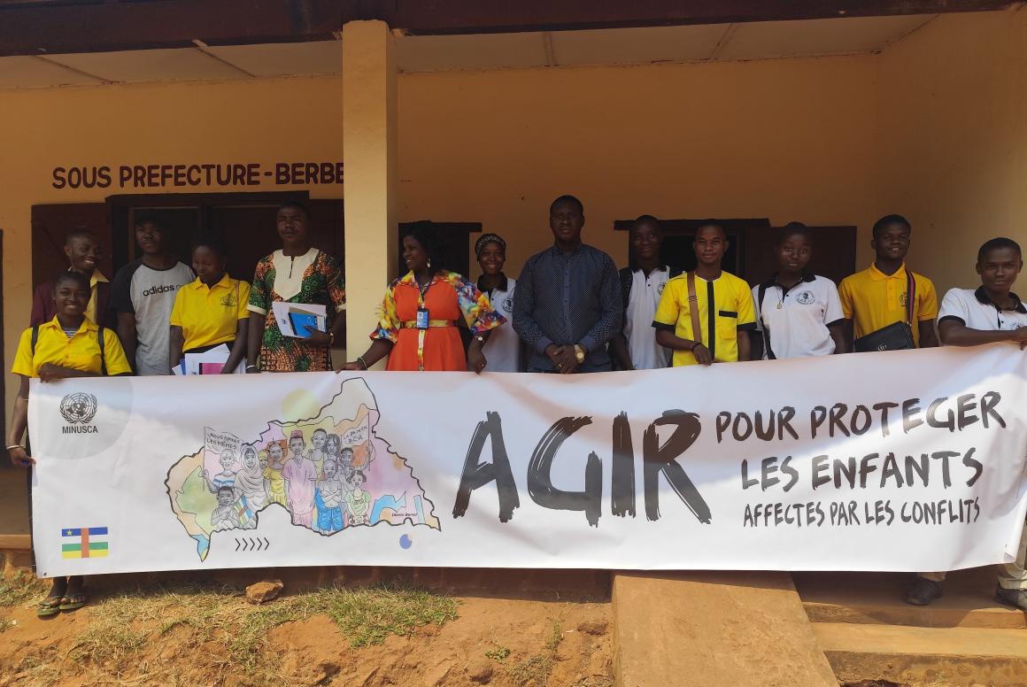 La MINUSCA a organisé, du 27 au 30 janvier 2025, une série d’ateliers destinés à 20 éléments des Forces de défense et de sécurité, 11 enseignants, 20 leaders communautaires et religieux, dont 14 femmes, et aux élèves du secondaire, sur les droits de l’enfant, à Berberati, chef-lieu de la région de l’Équateur.
