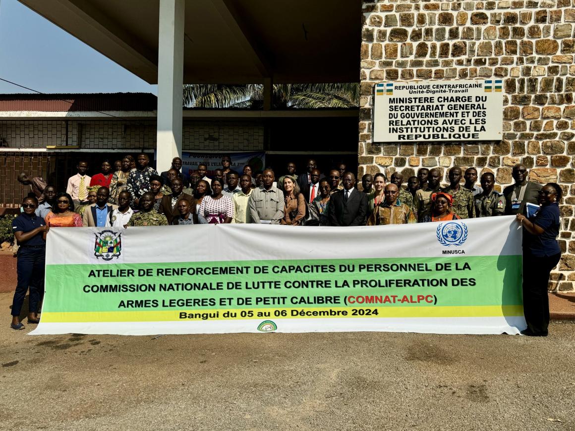 48 cadres civils et militaires récemment nommés à la Commission nationale de lutte contre la prolifération des armes légères et de petit calibre (COMNAT-ALPC) ont pris part, du 05 au 06 décembre 2024 à Bangui, à un atelier de renforcement des capacités avant leur prise de fonction.
