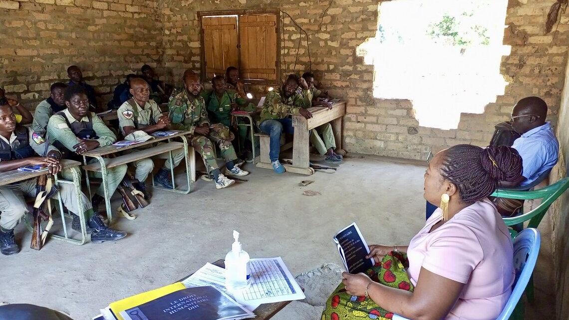 Du 26 au 27 janvier, la MINUSCA et la Commission Nationale des Droits de l’Homme et des Libertés Fondamentales ont organisé un atelier de renforcement des capacités à l’intention de 49 éléments des Forces de Défense et de Sécurité (FDS) ainsi que 26 acteurs communautaires, dont 8 femmes, dans le Haut Mbomou. L’objectif de cette formation était de rappeler aux participants les notions fondamentales du droit international humanitaire et la responsabilité qui leur incombe en matière de protection des civils dans l’exercice de leurs fonctions.