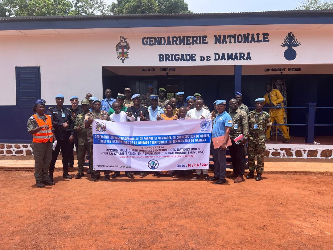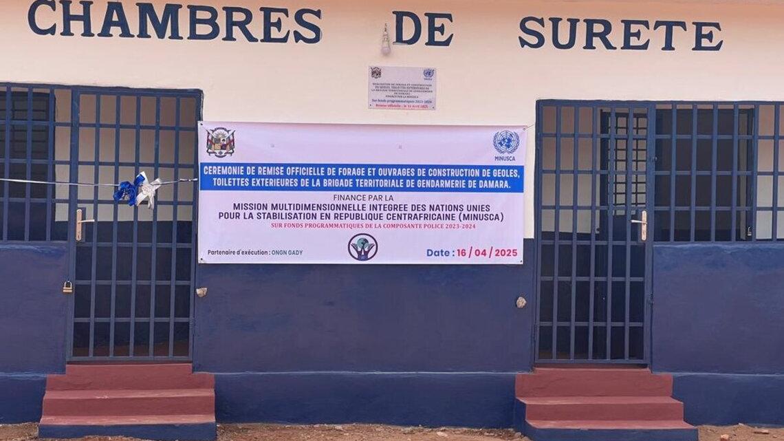 Un pas significatif vers le renforcement des capacités opérationnelles des Forces de sécurité intérieure (FSI) a été franchi ce 16 avril 2025, avec la remise officielle de plusieurs infrastructures essentielles à la Brigade territoriale de Gendarmerie de Damara, dans la préfecture de l’Ombella-M’Poko. Grâce à l’appui de la MINUSCA, un forage d’eau potable a été construit, ainsi que de nouvelles cellules sécurisées, des toilettes et l’extension d’un bureau pour les enquêteurs.