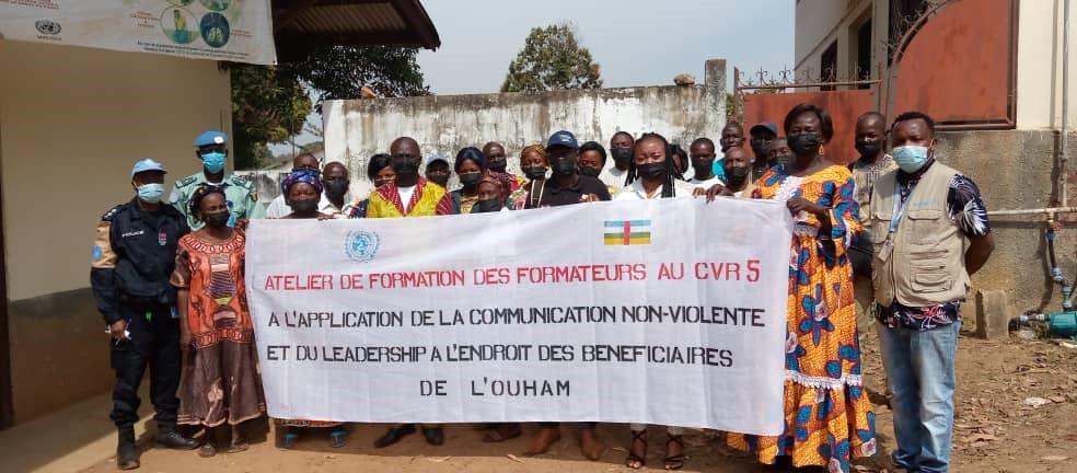 Cet atelier sur le thème « Formation des formateurs au CVR5, à l’application de la Communication Non-violente (CNV) et au leadership à l’endroit des bénéficiaires » s’est déroulé en présence du Maire de la ville de Bossangoa, Mr Denamguere Pierre et du représentant du préfet, ceci en prélude au lancement officiel des formations professionnelles au profit des bénéficiaires du CVR5.