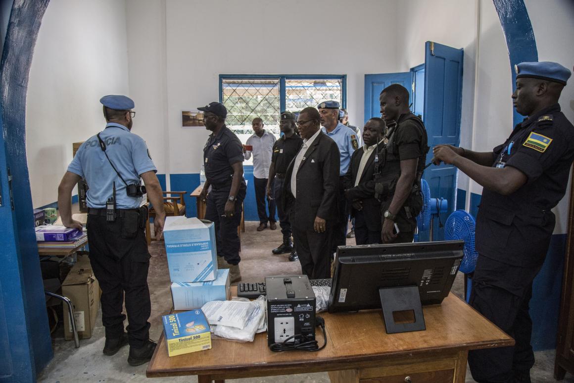 « La réhabilitation et l’équipement des locaux du GSIGN ont pour but d’améliorer considérablement les conditions de travail des personnels, et de faciliter la réaction dans les interventions, par la mise en place d’une section d’intervention permanente dotée d’outils fonctionnels », comme le souligne le Coordonnateur du Pilier Développement de la UNPol, le Colonel Taciano Alfredo Teixeira Correia, venu représenter le Chef de la composante police de la MINUSCA, lors de la remise des locaux, le lundi 19 novembre à Bangui, aux autorités compétentes, au nombre lesquels le Maire du 1er Arrondissement de Bangui, Jules ABEZOUA, le Directeur général adjoint de la Gendarmerie nationale, le Lieutenant-Colonel Célestin DOKOULA, et le Commandant du GSIGN, le Lieutenant-Colonel Didace NAMKIANGAA.