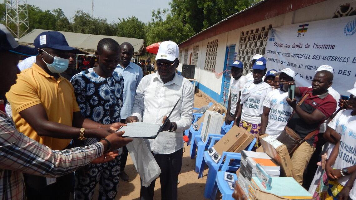 Le Forum local des droits de l’homme de Birao est désormais outillé et prêt à mener à bien sa mission. Il a reçu, le jeudi 16 décembre 2021, des équipements bureautiques et du matériel nécessaire à la mise en œuvre de ses activités de promotion et de protection des droits de l’homme dans la Préfecture de la Vakaga.