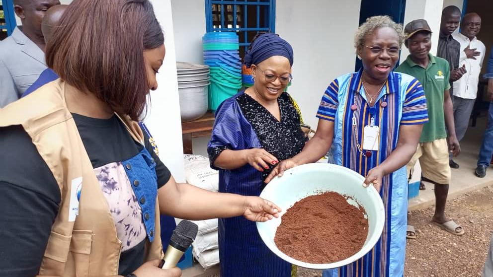 À Bossangoa, dans la préfecture de l’Ouham, la MINUSCA soutient le développement des capacités et la production des femmes de la filière karité. Un centre de formation et de production, ainsi que des kits de transformation et de conditionnement, leur ont été remis le 5 mars 2025 en présence des autorités locales et de la Cheffe du bureau de la MINUSCA.