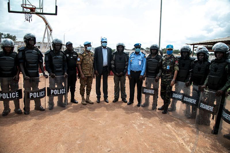 « Comment assurer la sécurité des populations, comment contribuer au maintien de l’ordre public ? Cet exercice que vous avez fait, montre que vous êtes déjà dans cette dynamique et que vous serez prêts à relever tous les défis en matière de sécurité dans le respect des libertés », a indiqué le Représentant spécial du Secrétaire général des Nations Unies et Chef de la MINUSCA, Mankeur Ndiaye, à la fin d’un exercice au camp indonésien de la Mission à Bangui. Il avait à ses côtés le Commandant de la Force de la MINUSCA, le Général Daniel Sidiki Traoré, le chef adjoint de la Composante Police de la Mission, le Commissaire divisionnaire Habi Garba, des responsables des Forces de sécurité intérieure (FSI) et des Forces armées centrafricaines (FACA), ainsi que des partenaires.