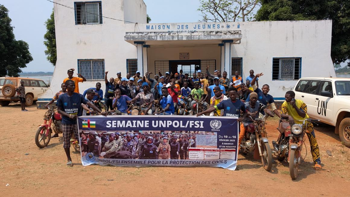 Du 13 au 16 février 2025, les policiers de la MINUSCA en poste à Mobaye dans la Basse-Kotto, et leurs partenaires, les Forces de sécurité intérieure (FSI), ont célébré la semaine de la Police. Au programme, plusieurs activités de sensibilisation, principalement axées sur la protection des civils.