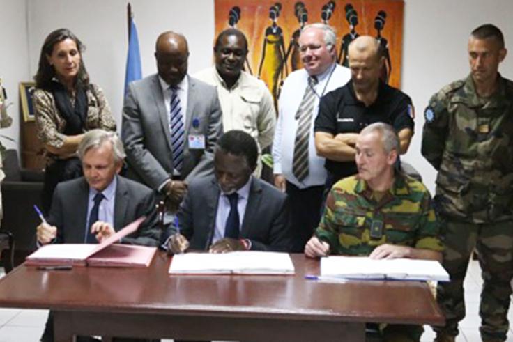 Le Représentant spécial du Secrétaire général des Nations Unies en RCA et chef de la MINUSCA, Parfait Onanga-Anyanga, celui de l’Union européenne, Jean-Pierre Raymondet-Commoy, et le commandant de l’EUTM-RCA, général Hermann Ruys, ont ainsi paraphé ce document au nom de leurs organisations respectives.