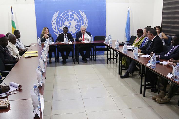 Le Représentant spécial du Secrétaire général des Nations Unies en Centrafrique et Chef de la MINUSCA, Parfait Onanga-Anyanga, était entouré, pour l’essentiel, de son adjointe, Diane Corner, de la Directrice des Affaires politiques, Barrie Freeman, du Chef des Affaires civiles, Laurent Guépin, du Chef d’Etat-major de la Force, Jacques de Lapasse, du commissaire a.i de l’UNPol, Roland Zamora, entre autres officiels.