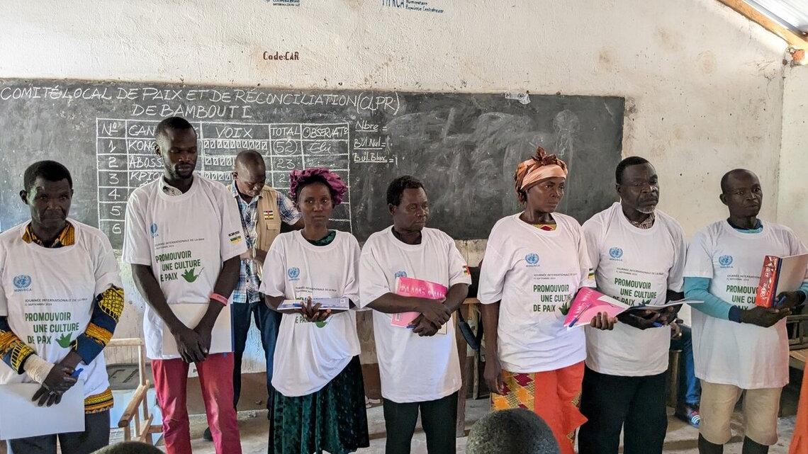 « Siri agawe na Bambouti », traduisez : La paix est revenue à Bambouti ; c’est le titre d’une chanson d’un artiste local au rythme de laquelle la localité a vibré pendant trois jours pour marquer les efforts fournis par la MINUSCA en appui aux autorités centrafricaines pour le retour de la paix à Bambouti. Du 18 au 21 septembre, la localité a été la capitale préfectorale de la paix dans le Haut-Mbomou. Dans une ambiance festive, la population a élu les sept membres qui composent le comité local de paix et de réconciliation (CLPR), installés le 21 septembre lors de la célébration de la Journée internationale de la paix.