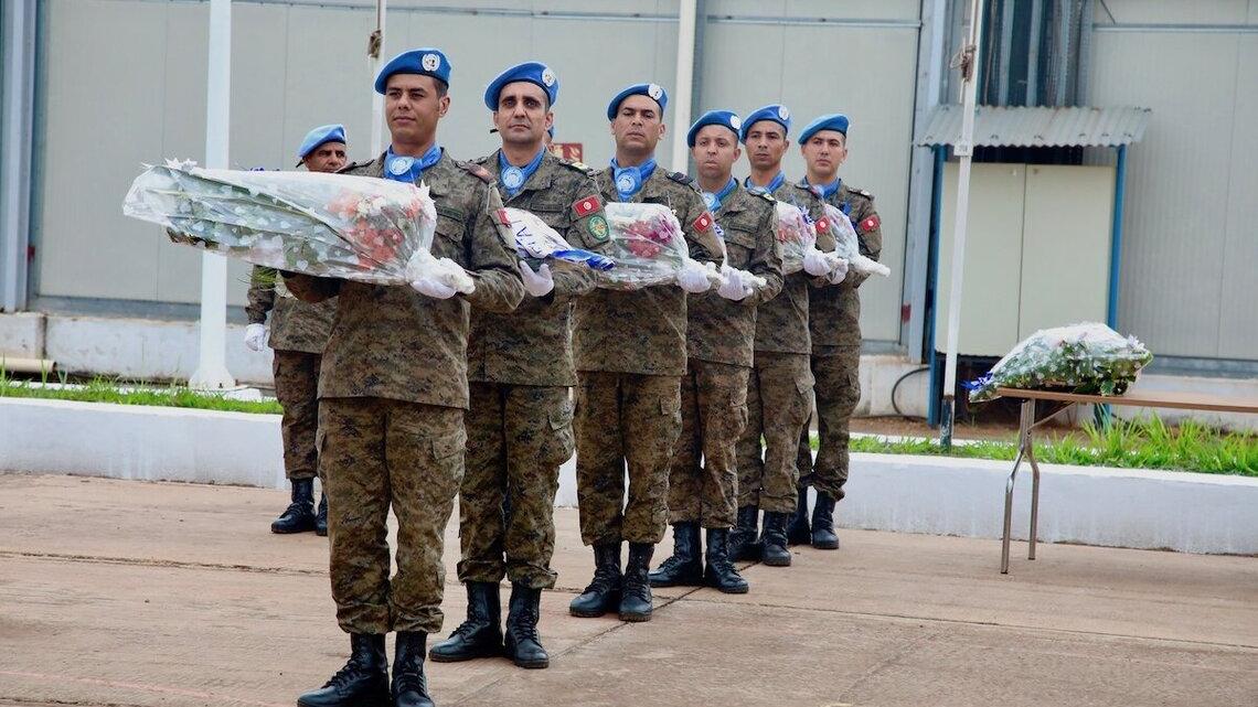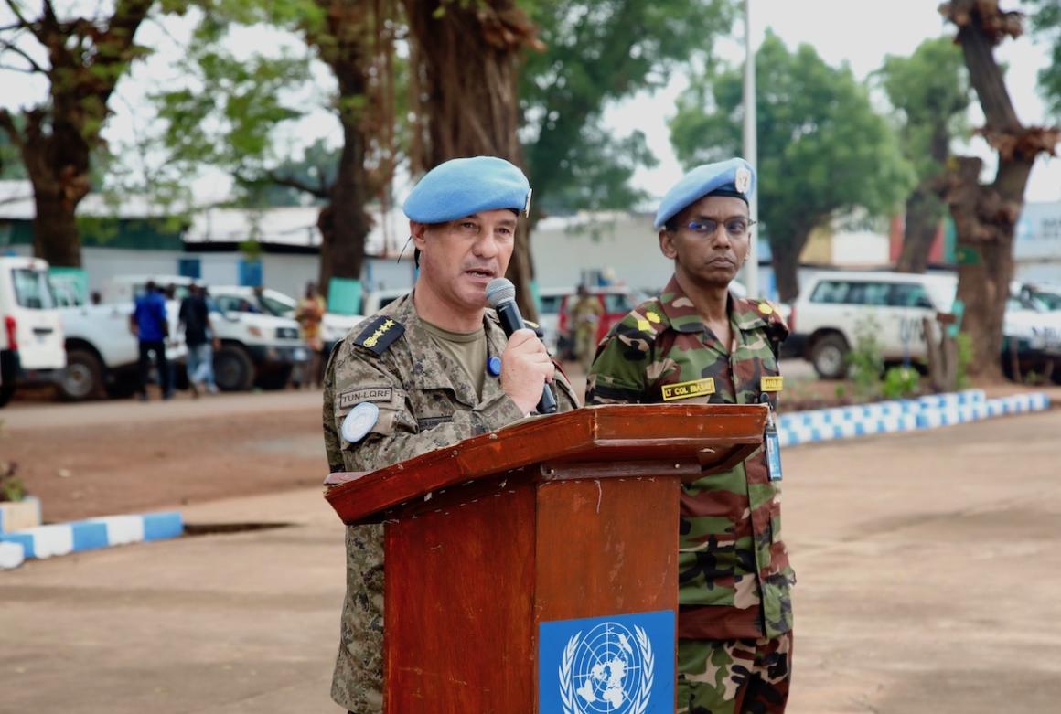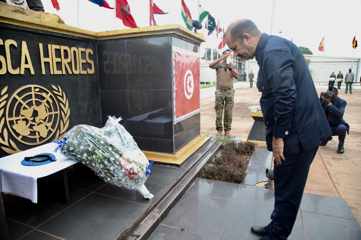 La MINUSCA a rendu un dernier hommage au Caporal Hamrita Seifeddine de la force d'intervention rapide du contingent tunisien de la Mission, lors d'une cérémonie tenue le 5 mars 2025 au quartier général de la Force de la Mission à Bangui. Le caporal-chef, a été honoré en présence du Représentant spécial adjoint du Secrétaire général de l’ONU pour la République centrafricaine, représentant la Cheffe de la MINUSCA.