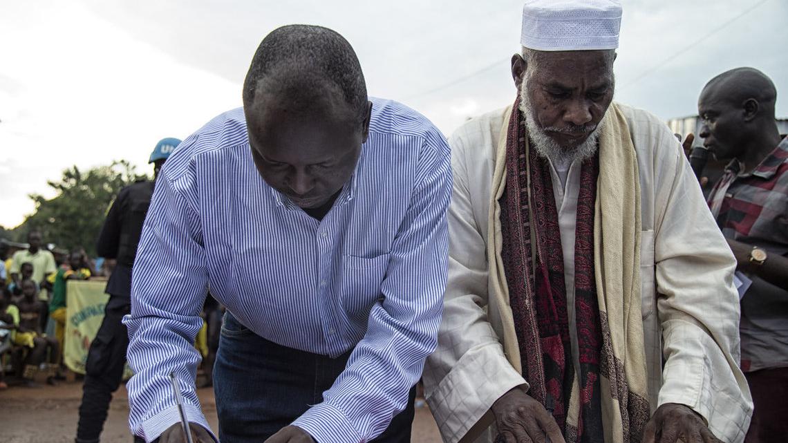 Jour de pluie, mais jour de joie, ce jeudi 28 novembre 2019, sur la route qui mène au quartier Fatima dans le 6e arrondissement de Bangui. Des dizaines d’habitants venus des 3e et 6e arrondissements de la ville ont répondu à l’invitation du Comité local de paix du 3e arrondissement (CPLR), initiateur de l’évènement du jour : « La signature de l’accord de bon voisinage en les communautés » desdits arrondissements. A côté des habitants, deux membres du Gouvernement, la Ministre Virginie Baikoua en charge de la Réconciliation et Maxime Mokom, Ministre du DDR, le député du 3e arrondissement Karim Meckassoua ainsi que le Représentant spécial du Secrétaire général et chef de la MINUSCA, Mankeur Ndiaye, la Représentante spéciale adjointe, Denise Brown et le Commissaire adjoint de Police de la MINUSCA, le Général Ossama El Moghazy.