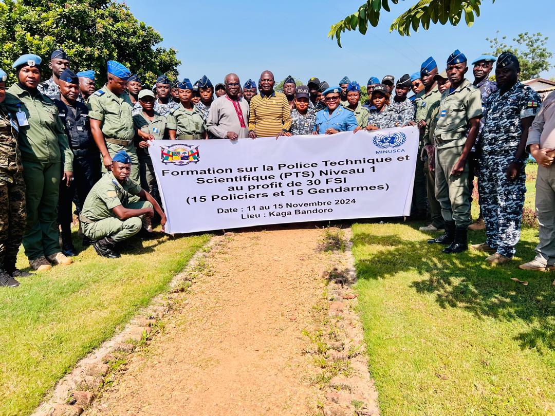 La gestion des scènes de crime et la signalisation des gardés à vue étaient le thème d’une formation organisée par la MINUSCA du 11 au 15 novembre 2024 à Kaga-Bandoro pour 30 membres des forces de sécurité centrafricaines.