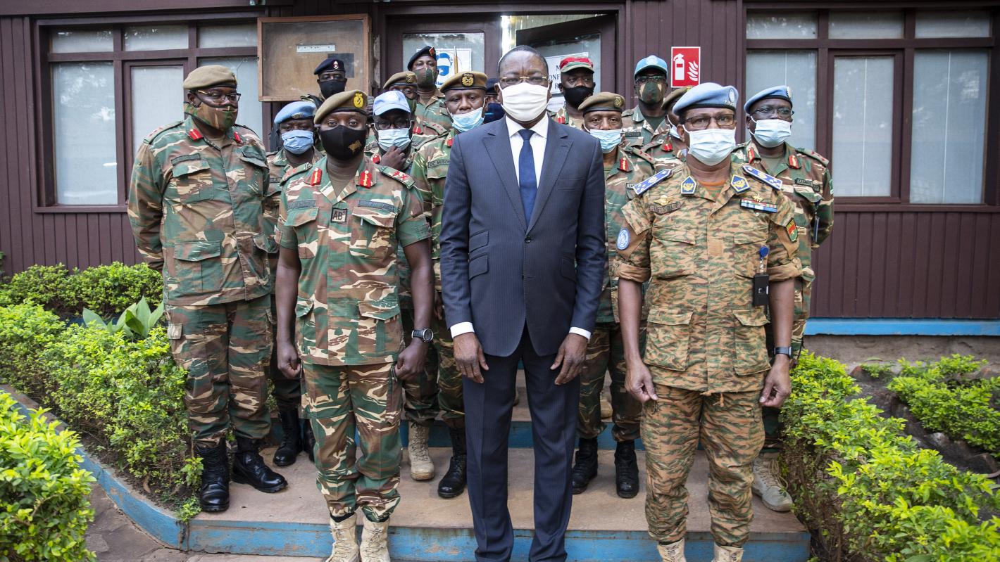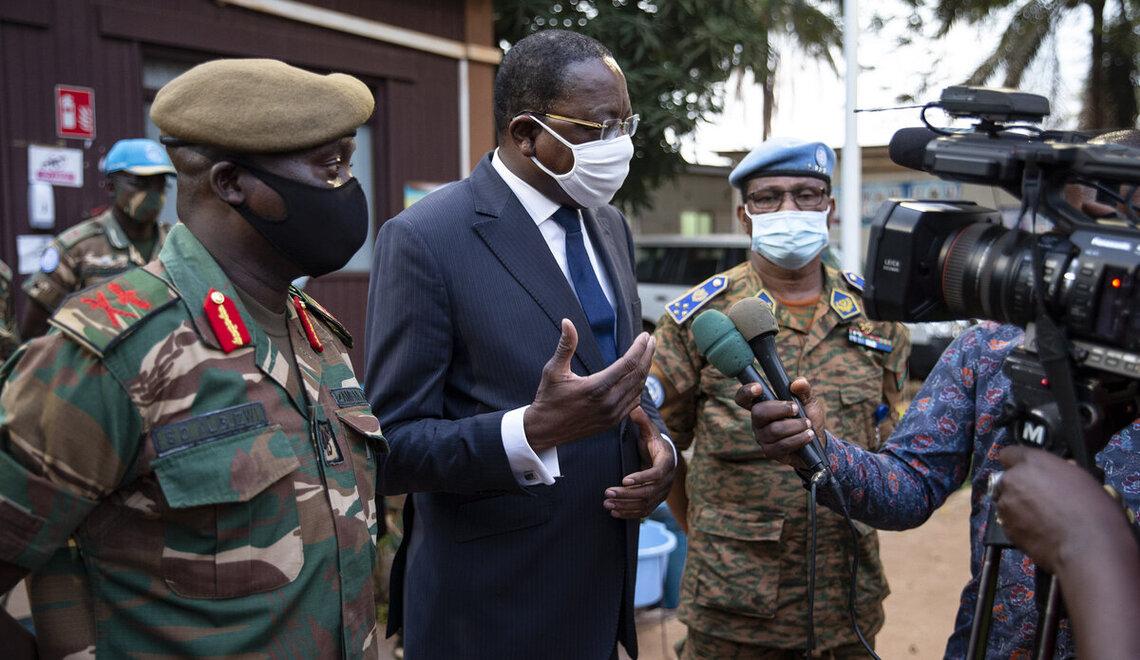Conduite par le Commandant Adjoint et Chef d'Etat Major de l’armée zambienne, une mission d’inspection sejourne en République centrafricaine du 07 au 17 novembre 2020, dans le but de faire le point sur la contribution du contingent zambien (ZAMBATT) déployé dans le cadre du mandat de la MINUSCA. La délégation a rencontré à cet effet, le mardi 10 novembre 2020, le Représentant spécial du Secrétaire général des Nations Unies et Chef de la MINUSCA, Mankeur Ndiaye, accompagné du Commandant de la Force de la Mission, le Général de corps d'armée Daniel Sidiki Traoré.