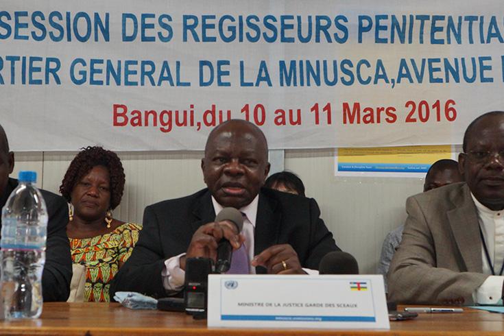« Aujourd’hui la question du genre et plus particulièrement la lutte contre les violences sexuelles interpellent aussi bien le Gouvernement Centrafricain que tous ses partenaires. Ainsi, la MINUSCA à travers la Section des Affaires Judiciaires et Pénitentiaires (SAJP) et l’Unité Genre (UG) soutient l’administration pénitentiaire par des formations, des outils de sensibilisation et d’information des acteurs des établissements pénitentiaires » a indiqué l’Officier Supérieur des Affaires Judiciaires, Fortuné Dako, au cours de la cérémonie d’ouverture de l’atelier tenue au quartier général de la MINUSCA.