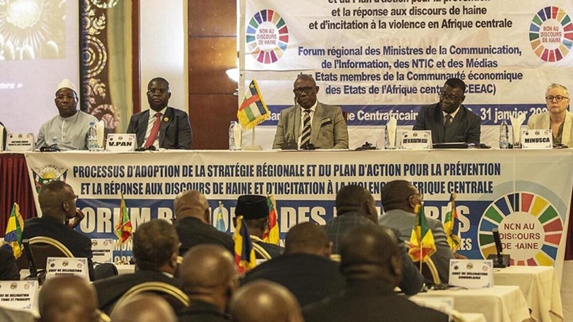 Du 30 au 31 janvier 2024, Bangui, la capitale de la République centrafricaine, a accueilli un Forum régional réunissant les Ministres de la Communication, de l’Information, des Nouvelles Technologies de l’Information et de la Communication, ainsi que des Médias de la Commission Économique des États de l’Afrique centrale (CEEAC). Avec la participation d'experts en provenance du Rwanda, du Cameroun, de la République démocratique du Congo, du Congo, du Tchad, du Burundi, de l’Angola, de Sao Tomé et Principe, de la Guinée Équatoriale et de la République centrafricaine, cette session a permis la pré-validation de la stratégie régionale et du plan d’action visant à prévenir et à répondre aux discours de haine et à l’incitation à la violence en Afrique centrale. Le Forum a bénéficié du soutien de la MINUSCA et de l’UNOCA.