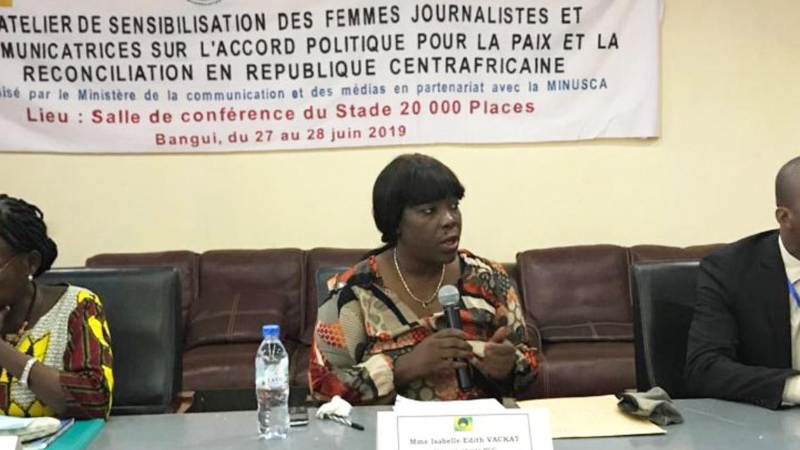 « Éduquer une femme, c’est éduquer une nation ». Ces mots de Boris-Ephrem Tchoumavi, Assistant du Représentant spécial adjoint du Secrétaire général en charge des affaires politiques à la MINUSCA, résument bien le sens des deux jours de sensibilisation des femmes journalistes et bloggeuses qui se sont tenus les 27 et 28 juin au Stade ‘’20 000 places’’ de Bangui. L’objectif de cette rencontre était d’expliquer aux communicatrices le contenu et les étapes de la mise en oeuvre de l’Accord politique de paix et de réconciliation (APPR), pour leur permettre de mieux communiquer sur ce sujet d’intérêt national.