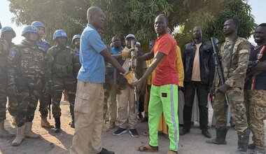 Les autorités locales, les représentants communautaires, la Police de la MINUSCA et leurs homologues du 6ᵉ arrondissement de Bangui se sont réunis, le 5 décembre 2025, pour un atelier de sensibilisation consacré à la prévention des accidents de la route.